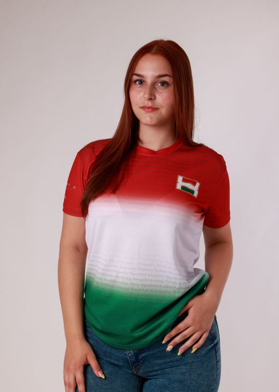 A nemzeti motivációs pólón apró betűkkel, nagy motivációt adó szavakat láthattok, a piros-fehér-zöld színátmenetes alapon. Szurkolói szemmel készült a póló, így a termék légáteresztős, könnyen szellőző anyagból készült. Az ország bármely pontjáról érkezve, MI mind egyek vagyunk, magyarok! Így bármilyen magyar sporteseményre nagy szeretettel ajánlom Nektek, szurkoláshoz ideális társ. Igényes egyedi tervezéssel és kivitelezéssel készült a számotokra!